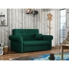 A buklén kívül a kárpitozásban előkelő helyet szerez magának a kellemes selyem, amibe a nappali bútorait burkolhatjuk. Nemcsak a kanapék, de a függönyök is lehetnek selyemből. Népszerű lesz a sötétzöld selyem kárpitozású kanapé Viva Magenta színű díszpárnákkal.