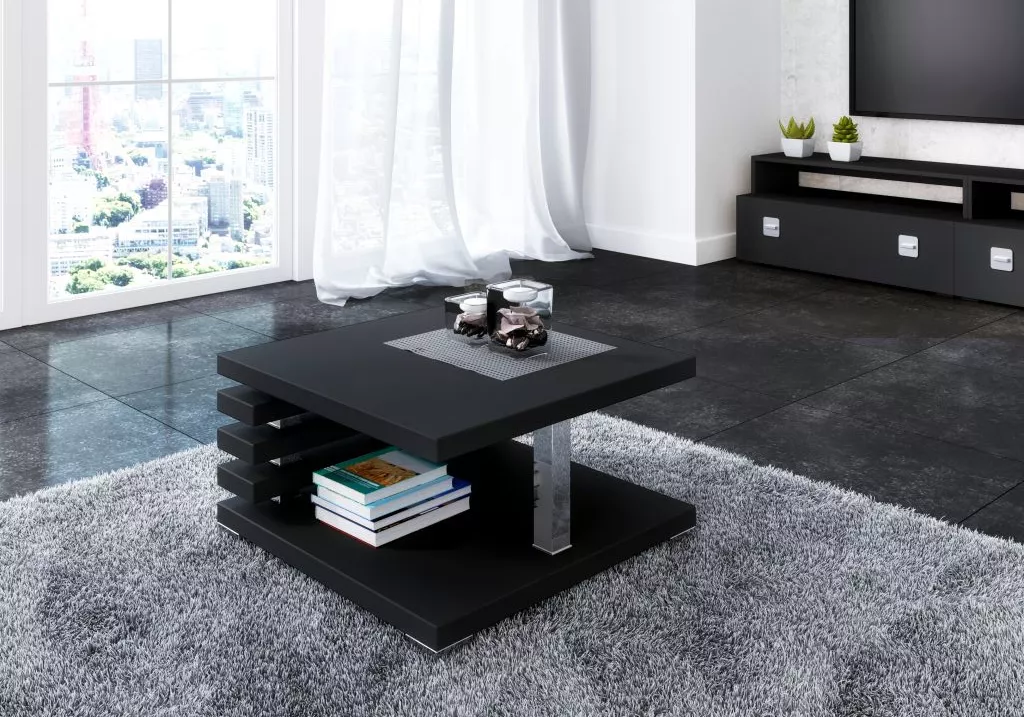 A CELAENA dohányzóasztal különleges külsővel rendelkezik, az egyik oldalán átlapolt táblák a másik oldalán fém láb található. Kiváló minőségű laminált lapokból készült,a melyek sima felülettel rendelkeznek és könnyen tisztíthatóak. A bútorok szélei PVC élzárókkal vannak ellátva.