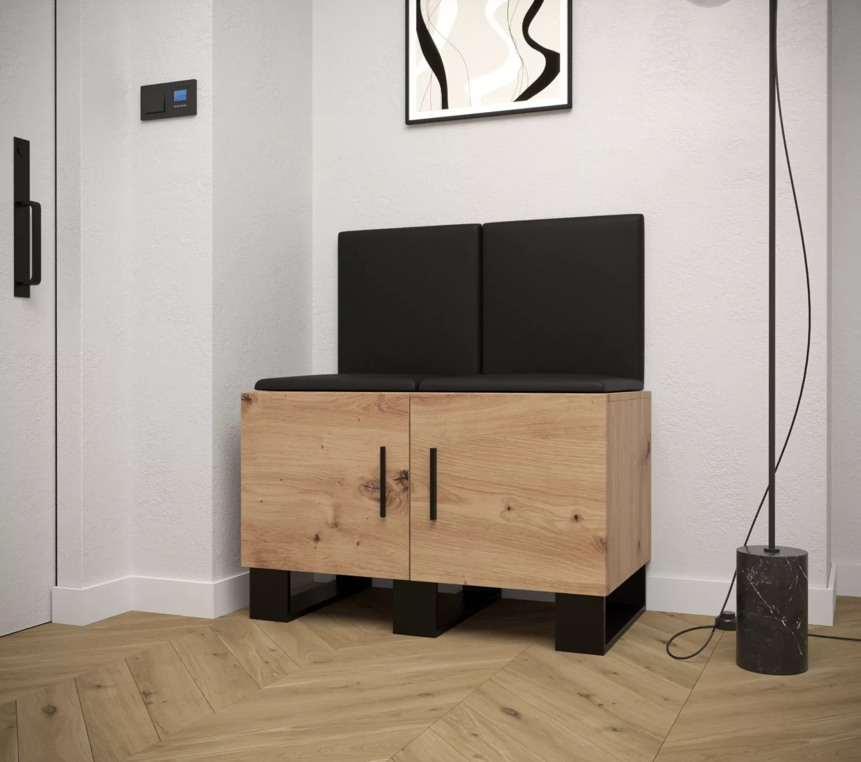 RUMIE 19 előszobagarnitúra - artisan tölgy, fekete ekológikus bőr panelek