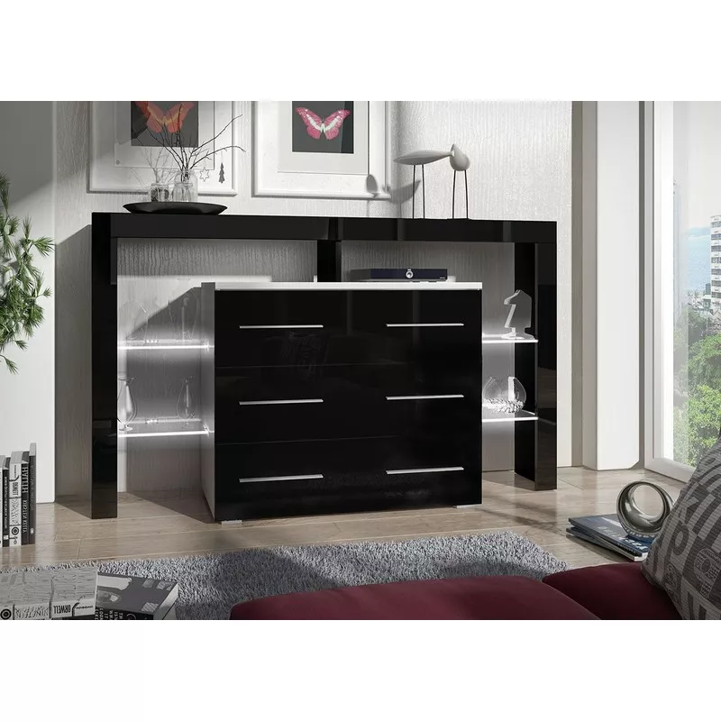 CLANE 2 fiókos komód LED világítással - fehér / fényes fekete