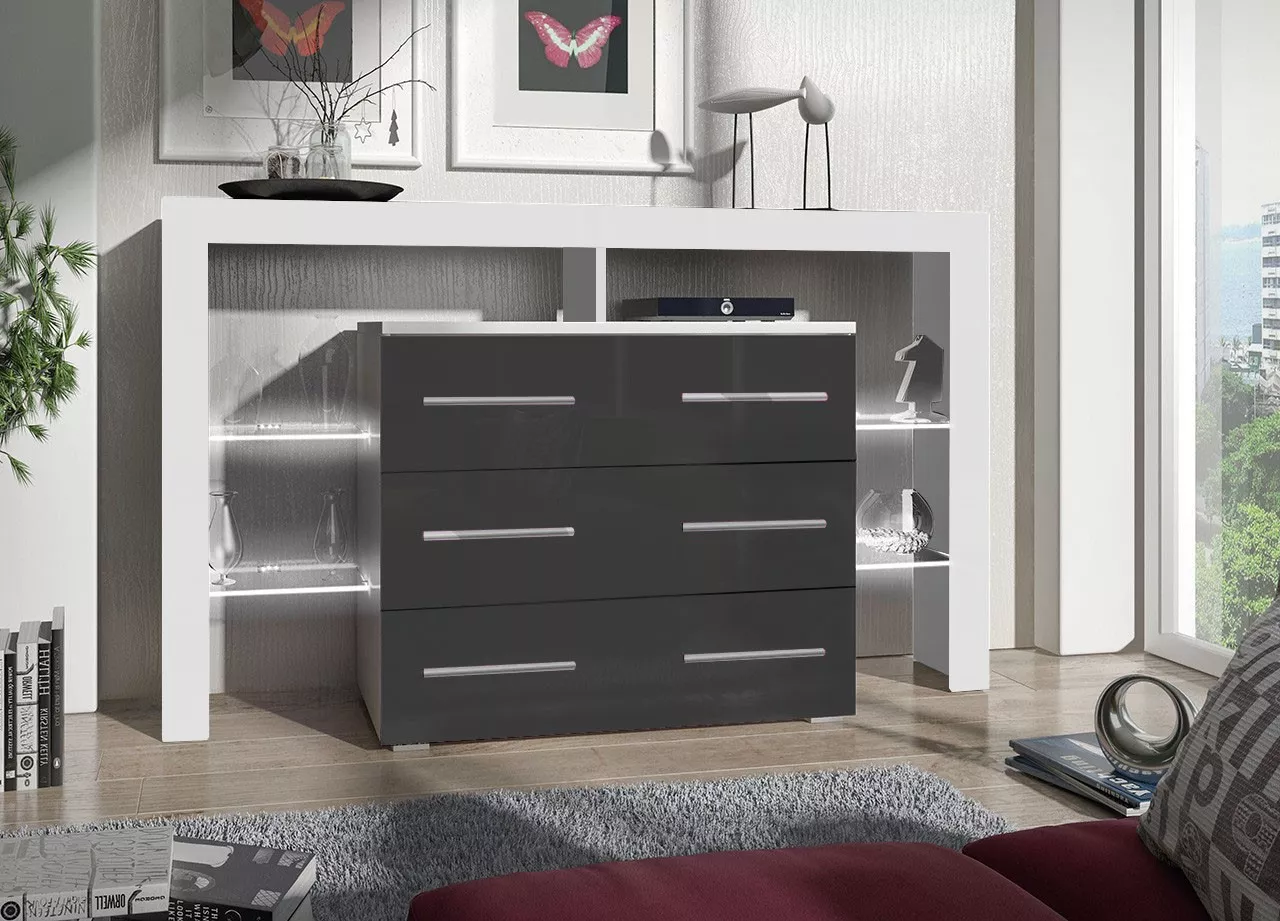 CLANE 2 fiókos komód LED világítással - fehér / fényes szürke