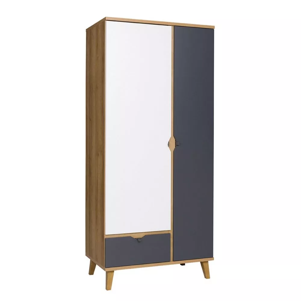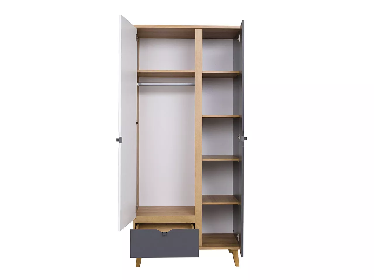A tágas és elegáns VISTA gardrób univerzális színekben kapható, amelyek tökéletesen illeszkednek a skandináv belső térhez. A kétajtós gardrób ruhaakasztó rúddal, mély polcokkal és tágas fiókkal van felszerelve. A gardrób kiváló minőségű LTD műanyagból készült ABS élekkel.