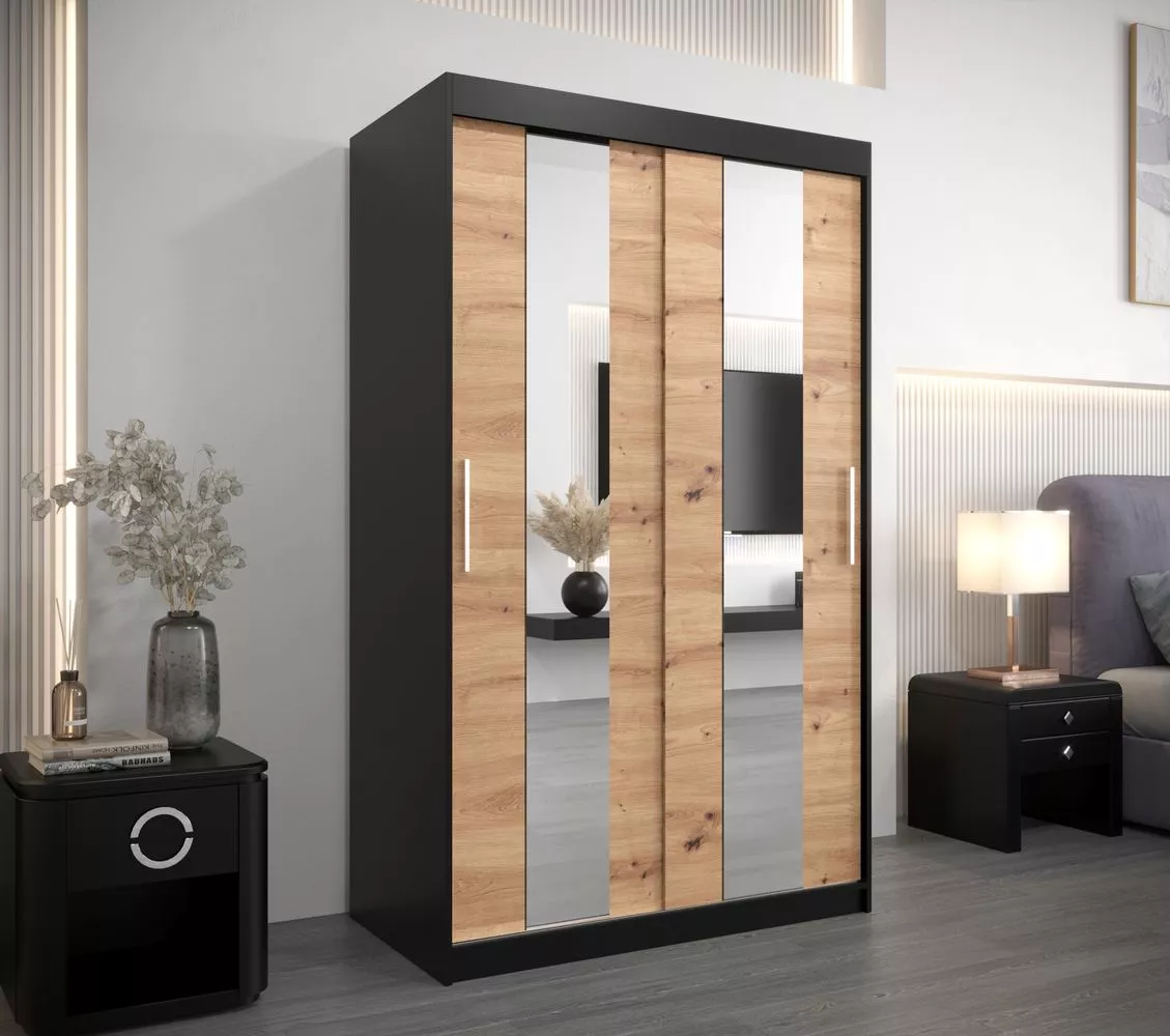 DIANA tükrös ruhásszekrény - szélesség 120 cm, fekete / artisan tölgy