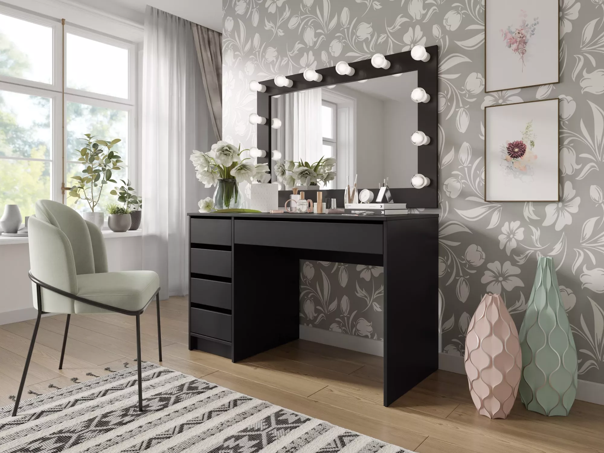 A CONALL univerzális asztal íróasztalként és öltözőasztalként is használható. Rögzítés nélküli fiókokkal van felszerelve, amelyek az Ön igényei szerint jobb vagy bal oldalra szerelhetők. A gyártáshoz használt anyagok ellenállnak a nedvességnek és a karcolásoknak.