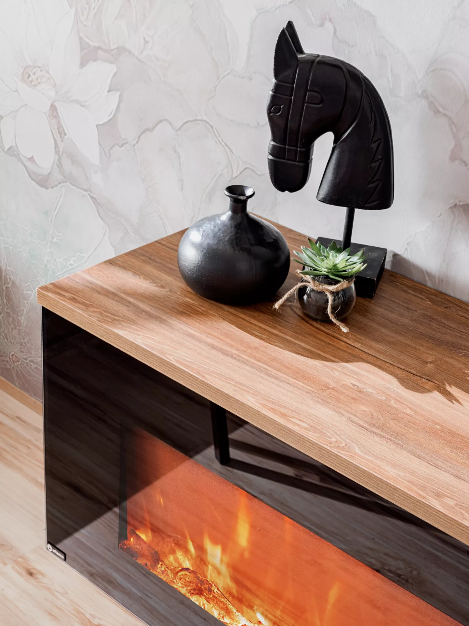 Nappali fali dekoráció elektromos kandallóval AGRIA - antracit / zászlórúd tölgy
