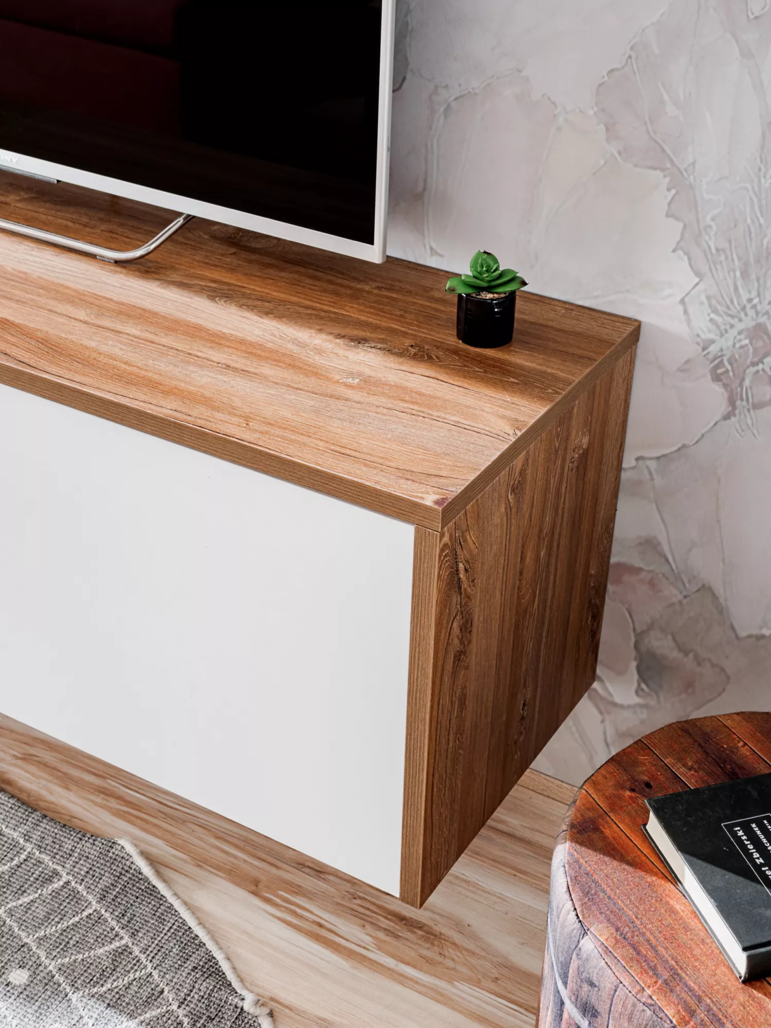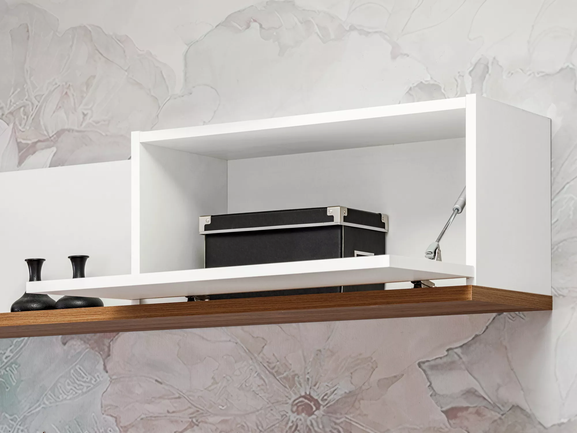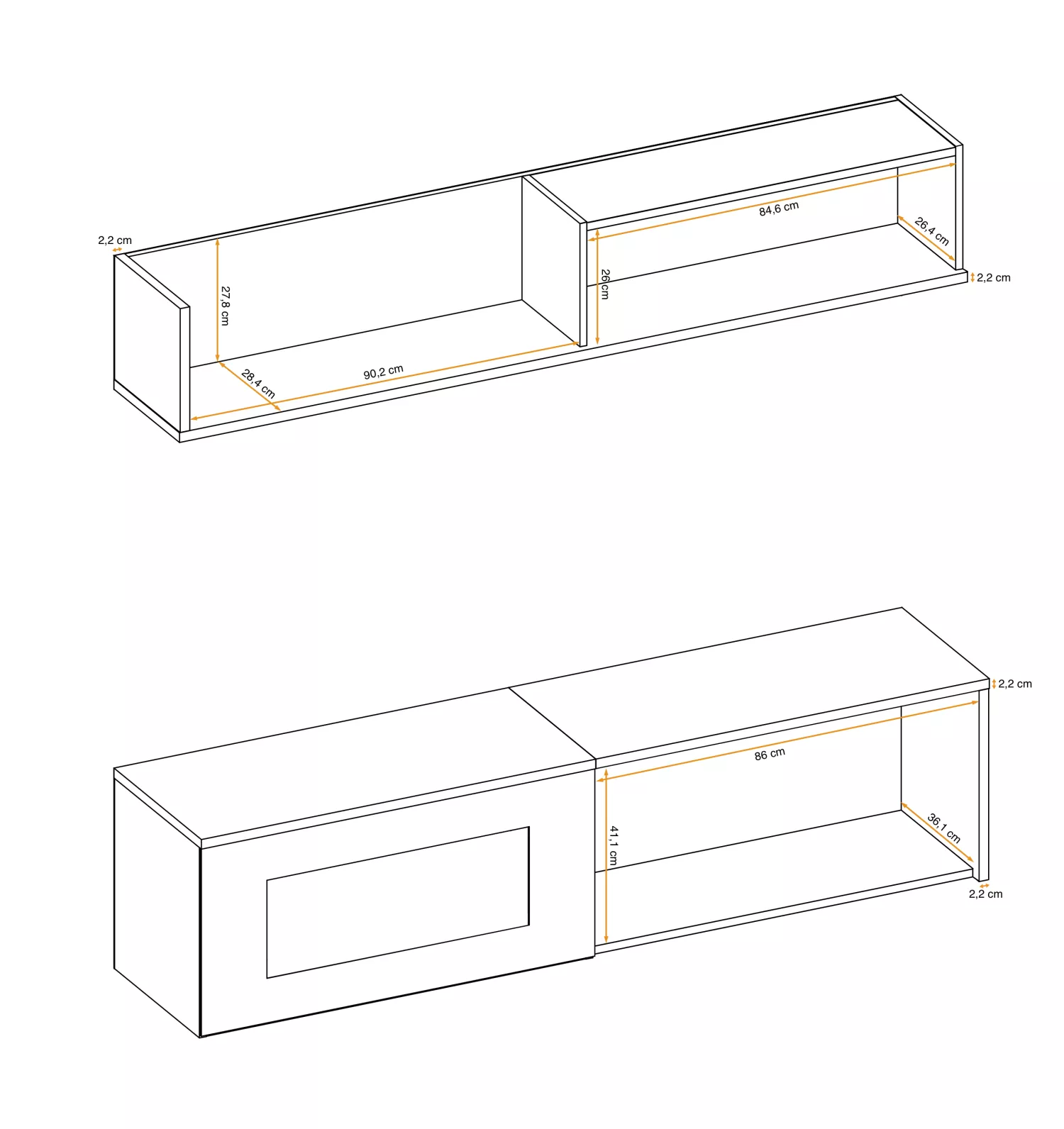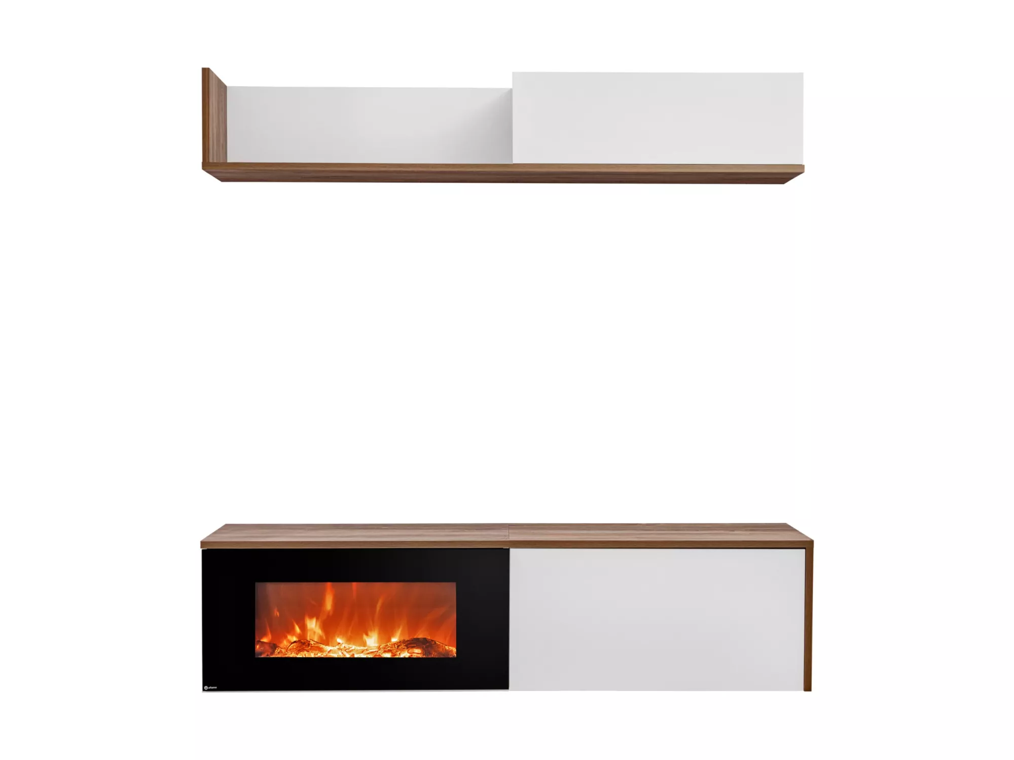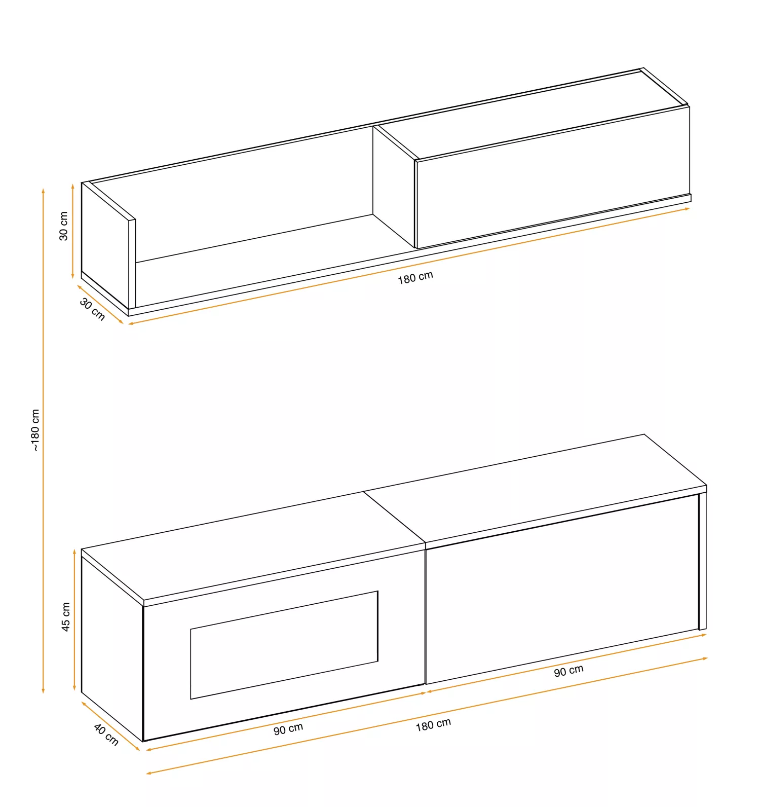 Az AGRIA egy modern nappali fal, amelyet az egyszerű és hatékony nappali elrendezés szerelmeseinek terveztek. A fal egy TV-szekrényből, elektromos kandallóval és egy akasztós polcból áll. Érdemes megjegyezni a kényelmes "NYOMÁSRA NYITVA" nyitórendszert, amely megkönnyíti a mindennapi használatot.