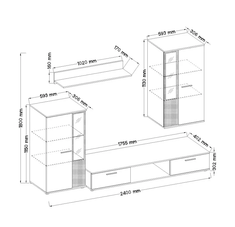 - TV-asztal: 175,5/27,7/40,2 cm