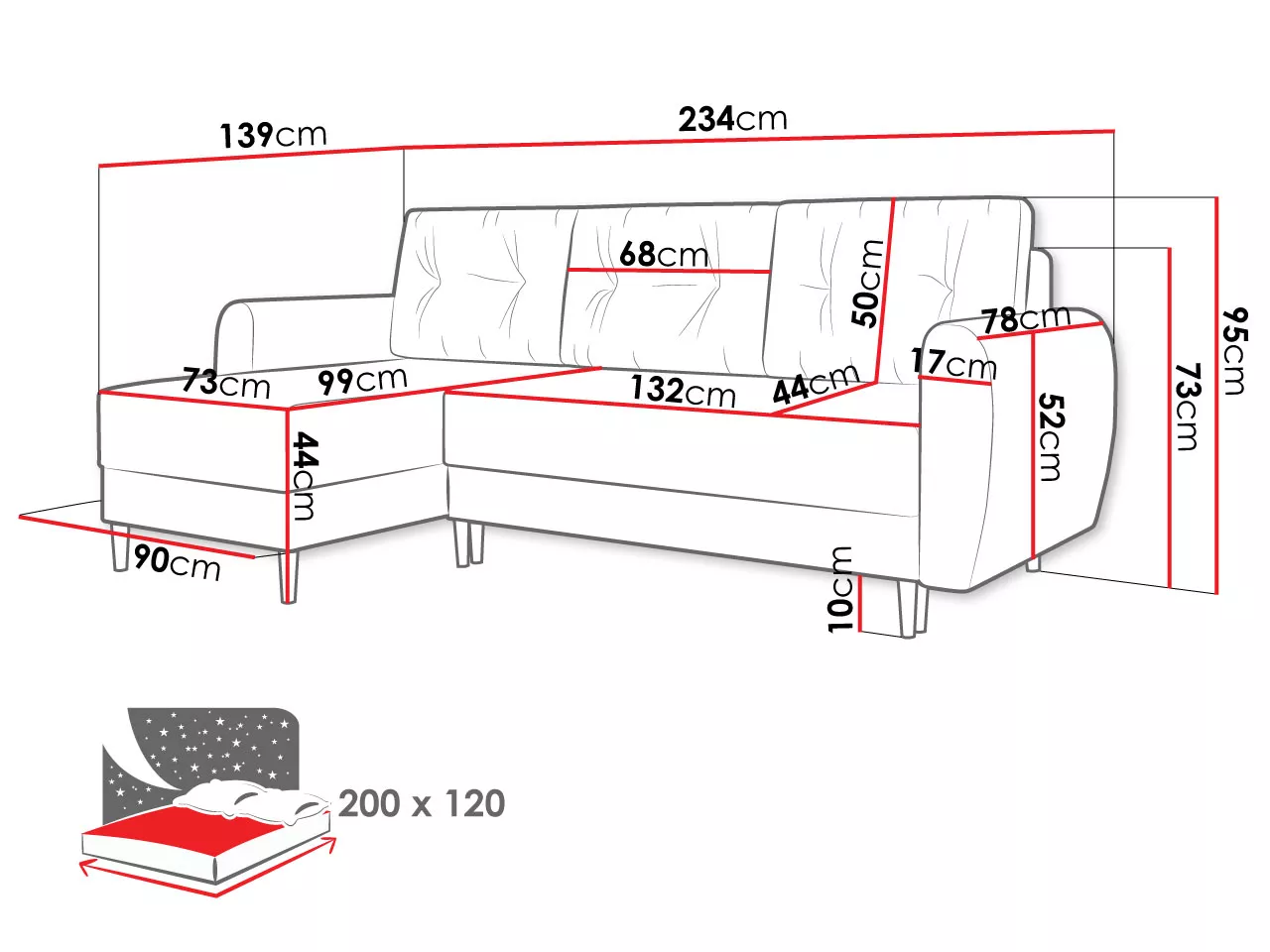 - alvófelület: 120x200 cm