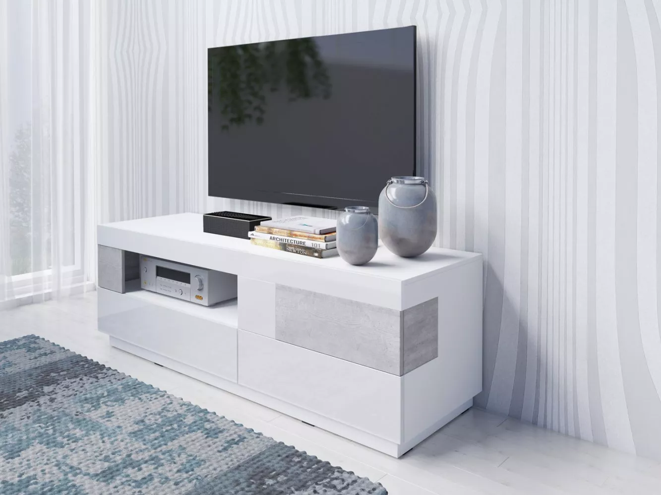 Egyszerű TV-állvány SHADI, fehér / beton
