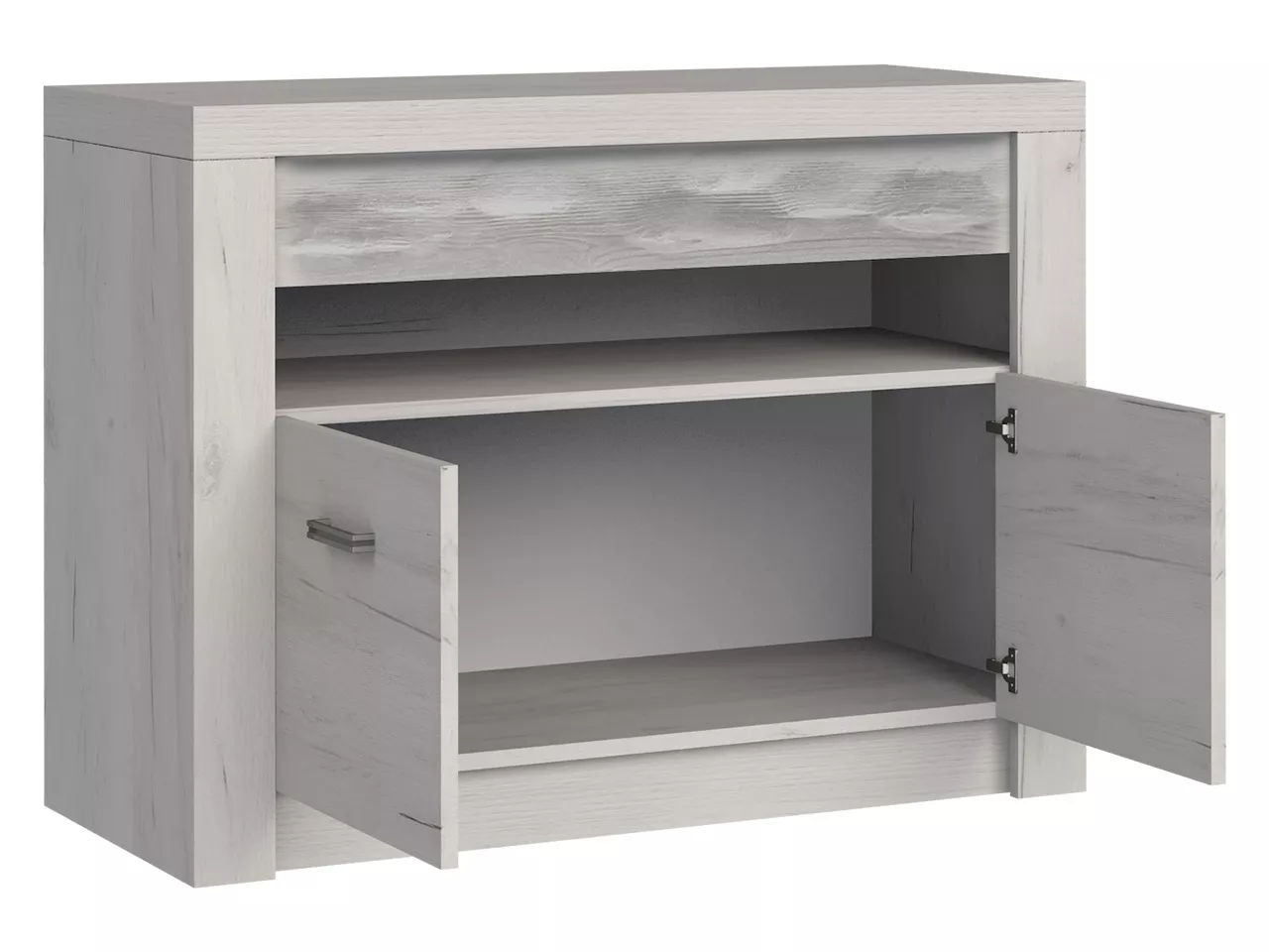 A CHALAPATA 1 TV-állvány egy olyan bútordarab, amelyet időtlen egyszerűség jellemez. A természetes fát utánzó színek tökéletesen kontrasztot alkotnak az egyszerű geometriai formákkal, és harmonikus duettet alkotnak széleskörű elrendezési lehetőségekkel. Az állvány DTD-ből készült, PVC furnér bevonattal és természetes szálcsiszolt fa betéttel. Funkcionalitását tekintve az állvány elegendő helyet biztosít a szükséges TV-kiegészítőknek. A nyitott polc és szekrény tökéletes helyet biztosít set-top boxnak, játékoknak, lemezeknek és fejhallgatóknak.