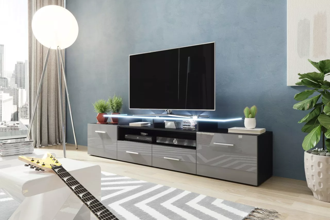 TV állvány LED fehér világítással SOBRAL - fekete / fényes szürke