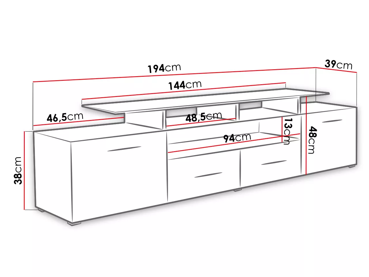A SOBRAL TV-állvány elegáns dizájnjával tűnik ki, és tökéletesen illeszkedik bármilyen modern enteriőrbe. Az asztal masszív anyagokból készült, amelyek garantálják a bútor hibátlan megjelenését hosszú éveken át. Az asztal szerkezete matt színű, az előlap magasfényű. Funkcionalitását tekintve a TV-állvány rengeteg helyet biztosít a szükséges TV-kiegészítőknek. A nyitott polcok, fiókok és a teljes előlappal rendelkező bárszekrények tökéletes helyet biztosítanak set-top boxnak, játékoknak, lemezeknek és fejhallgatóknak.