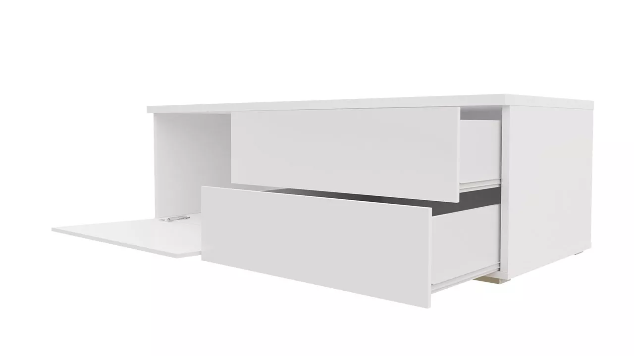 FERNS 11 TV-asztal LED világítással - fehér / fényes fehér, balos