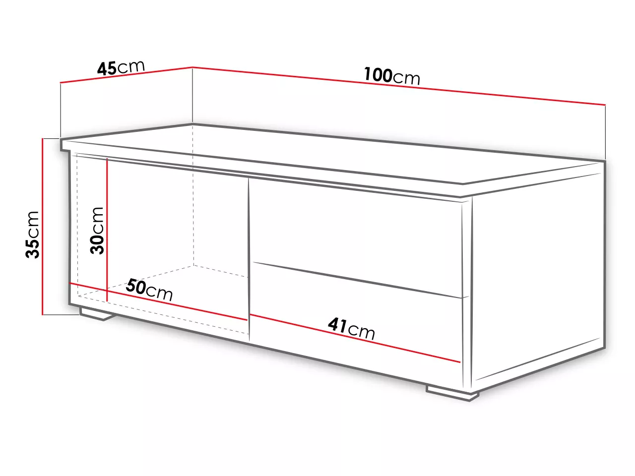 A FERNS 11 TV-asztalt elegáns kialakítása jellemzi, és minden modern belső térbe tökéletesen illeszkedik. Az asztal elülső oldalai a modern "PUSH TO OPEN" rendszerrel nyílnak – csak finoman nyomja meg az elülső oldalakat, hogy felfedje a tágas belső teret. A bárszekrény és a két fiók elegendő helyet biztosít a TV-tartozékok tárolására.